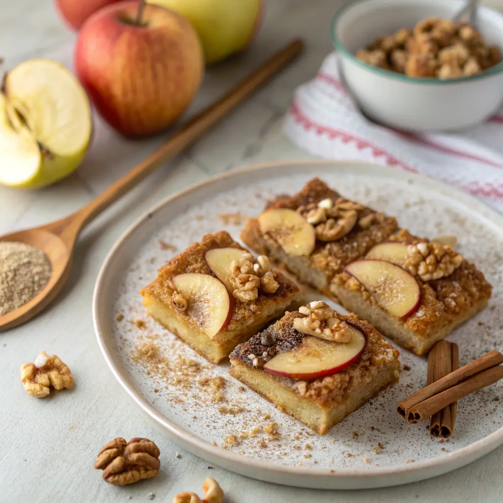 Serve your Apple Squares with Walnuts & Cinnamon Sugar warm with a scoop of vanilla ice cream or a dollop of whipped cream. For a more wholesome option, pair them with Greek yogurt and a drizzle of honey. They also make a wonderful brunch treat—served slightly warm alongside coffee or chai tea.