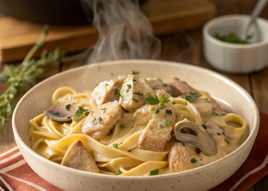 One‑Pot Creamy Mushroom Chicken Pasta