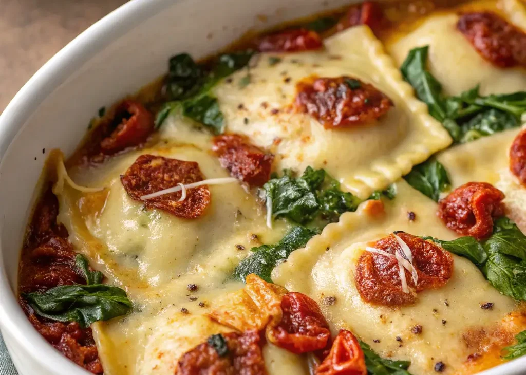 Sun-Dried Tomato and Spinach Ravioli Bake
