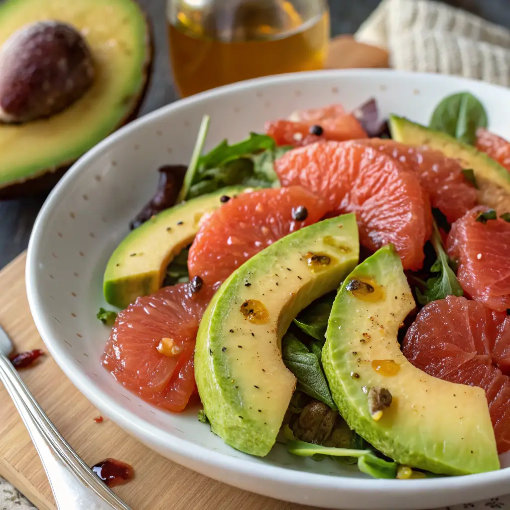 This pairing is not only delicious but also nutrient-rich: avocados provide healthy fats and potassium, while grapefruit delivers vitamin C and antioxidants. Together, they create a salad that’s as healthful as it is flavorful.