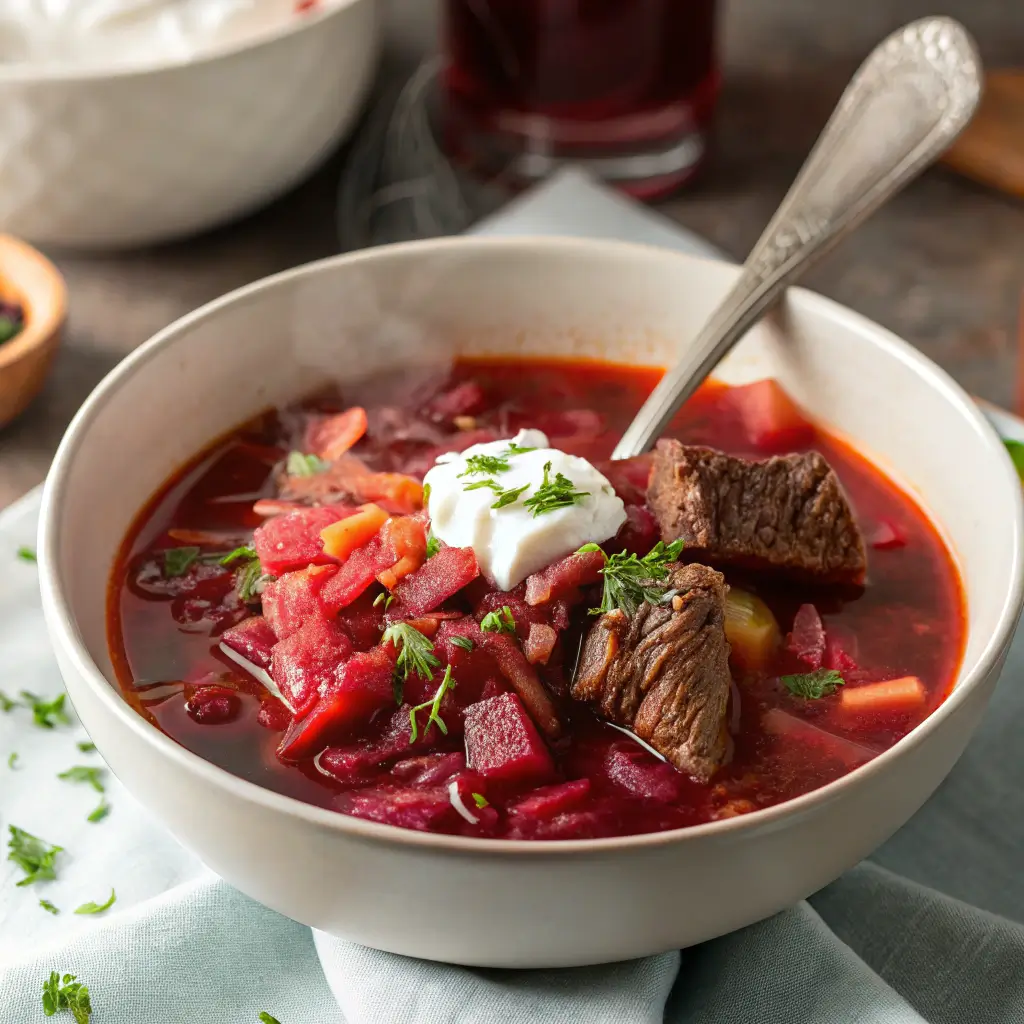 Ideal for family dinners, cold evenings, or festive occasions, this borscht is a versatile and satisfying addition to any recipe collection. Its vibrant color, rich aroma, and comforting taste make it a dish you’ll return to again and again.