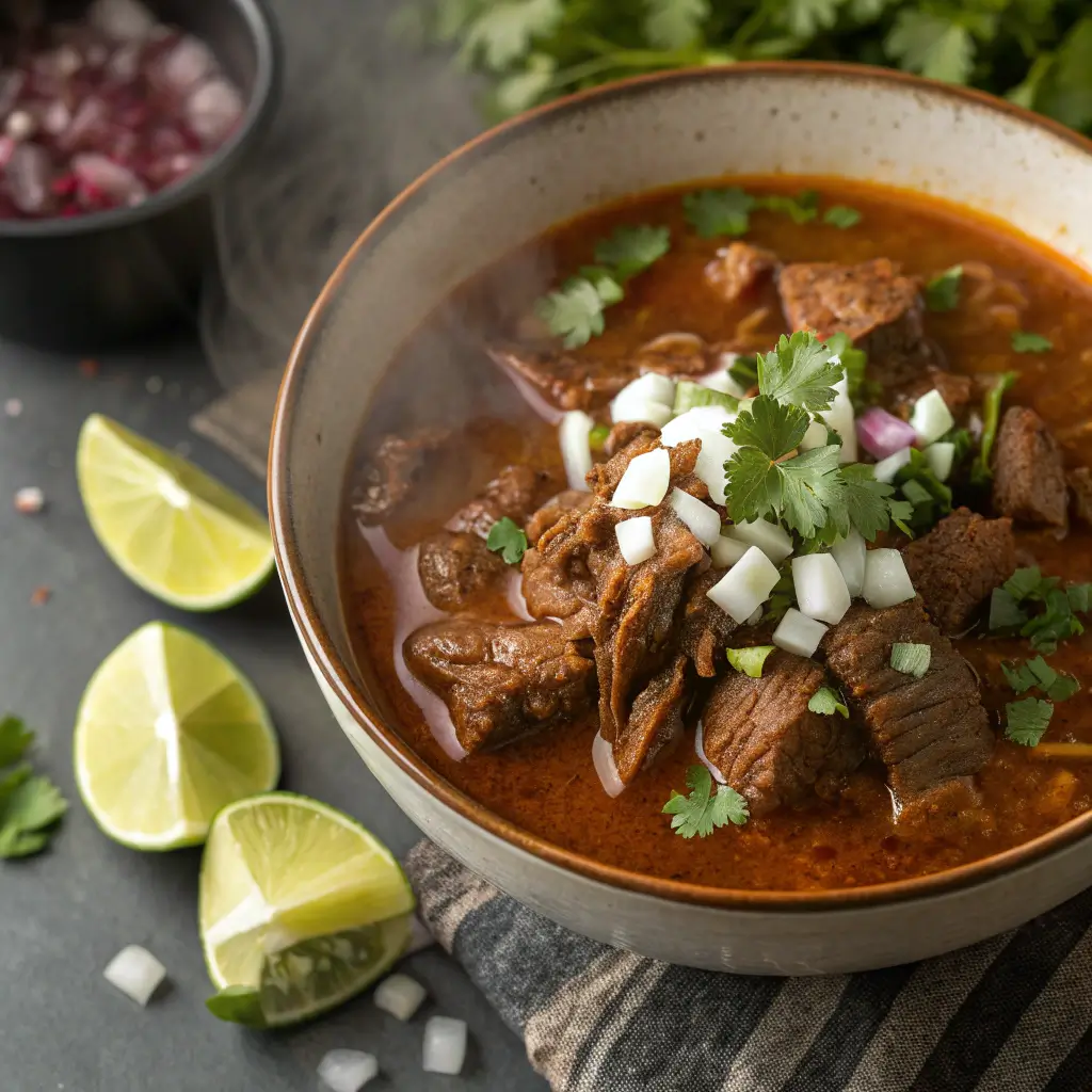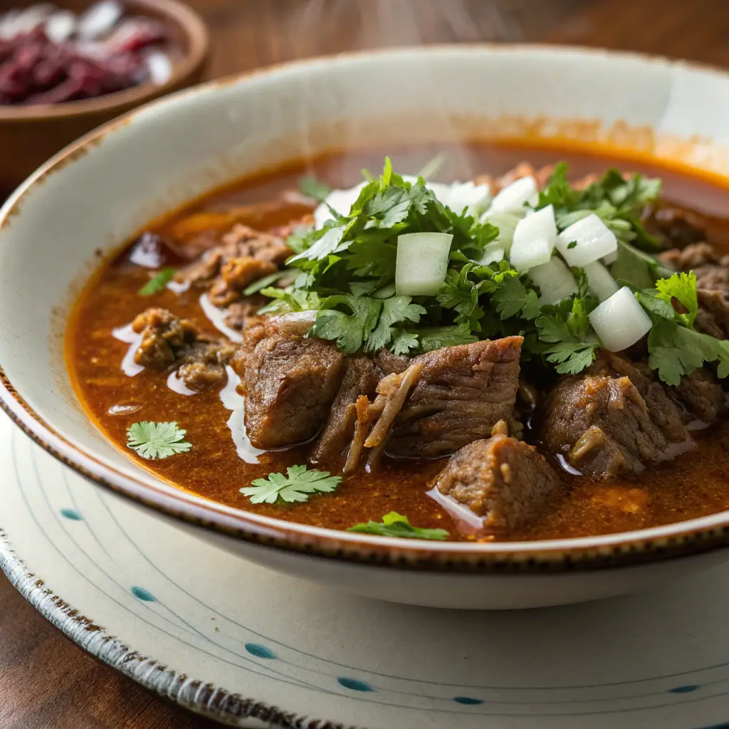 - The Stew (Consomé): A rich broth infused with smoky dried chiles, spices, and beef juices.