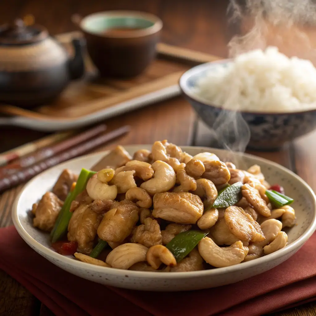 Cashew Chicken pairs beautifully with simple sides that soak up its sauce. Some ideas include: