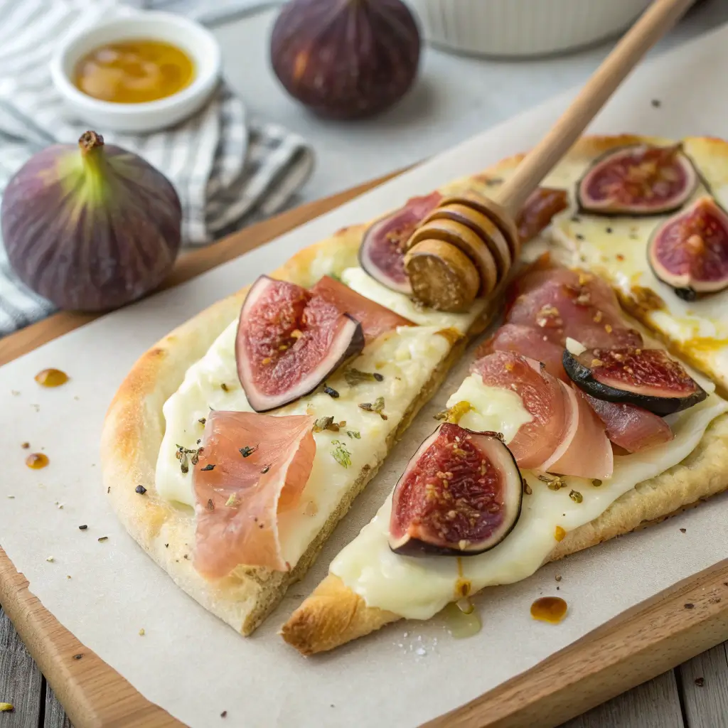 Flatbreads have been a staple of global cuisine for centuries, with variations found in Mediterranean, Middle Eastern, and European cooking. This particular combination draws inspiration from French and Italian flavors, combining creamy Brie with sweet figs and salty prosciutto — a classic flavor trio.
