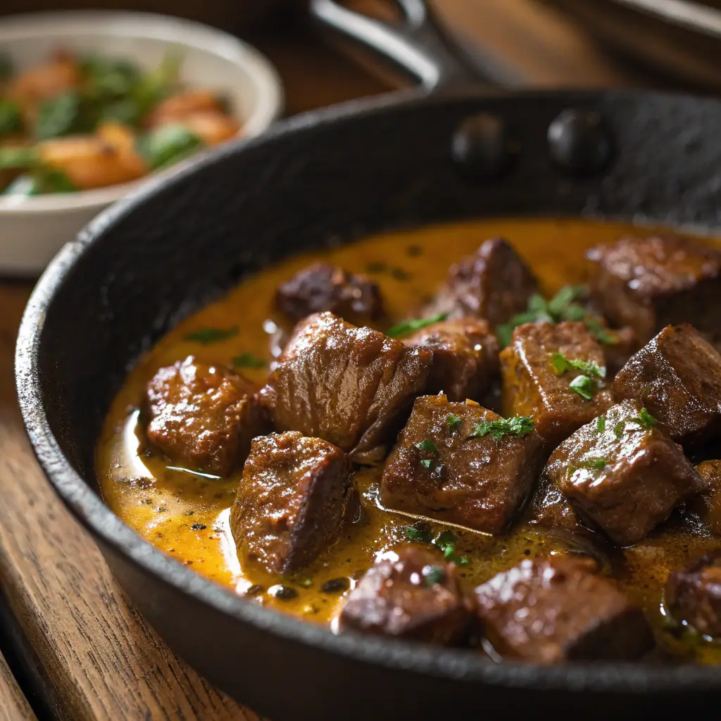Add steak bites in a single layer, cooking in batches to avoid overcrowding. Sear for about 2–3 minutes per side until golden brown and cooked to your preferred doneness. Remove from the skillet and set aside.