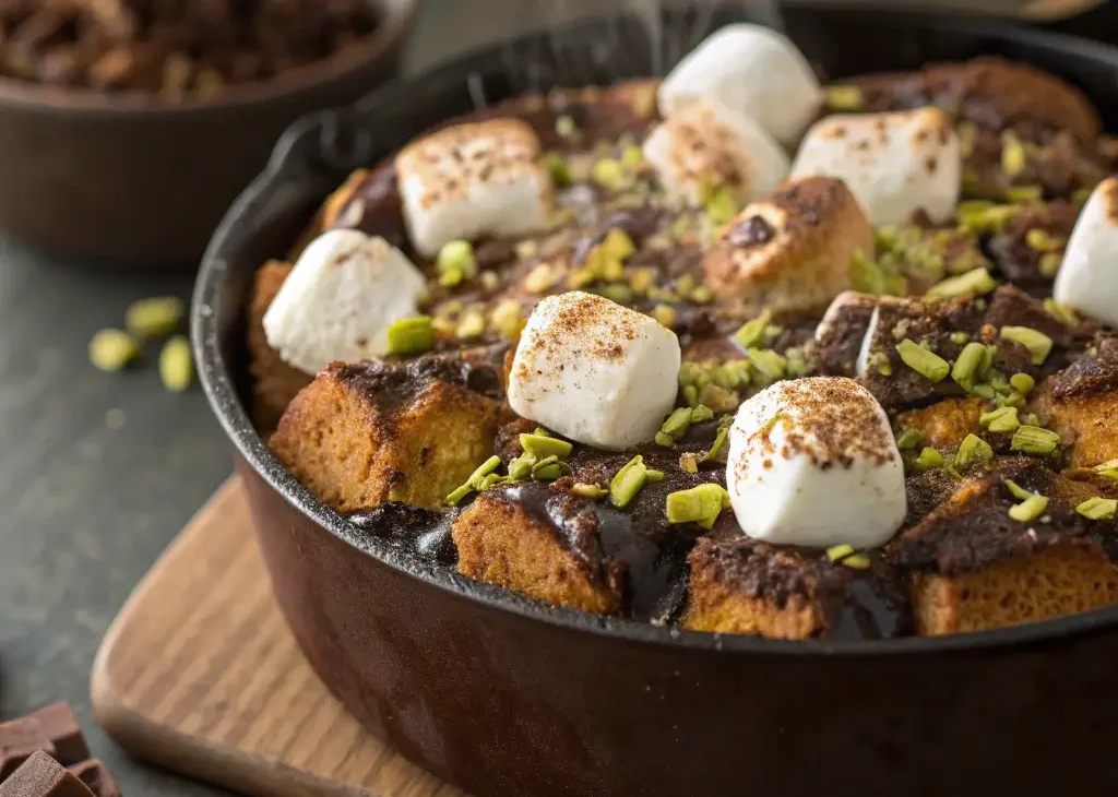 Pistachio S’mores Bread Pudding Delight