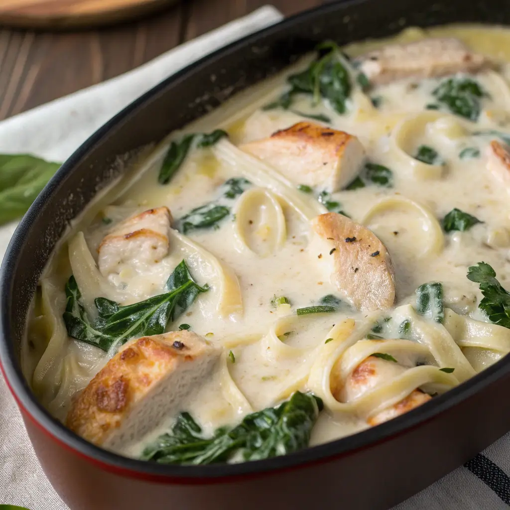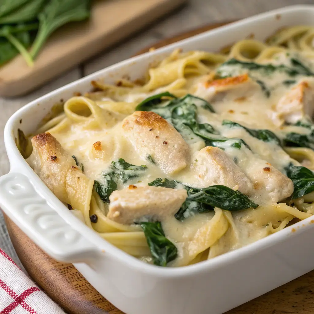 Chicken Alfredo Bake with Spinach: Creamy, Comforting, and Family-Friendly