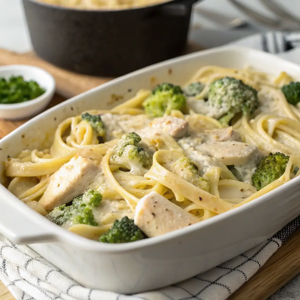 What makes this dish special is its blend of flavors and textures: juicy chicken, crisp-tender broccoli, and the rich, velvety Alfredo sauce made from butter, garlic, cream, and Parmesan. Everything bakes together until the edges turn beautifully golden and crispy, creating a restaurant-quality meal straight from your oven.