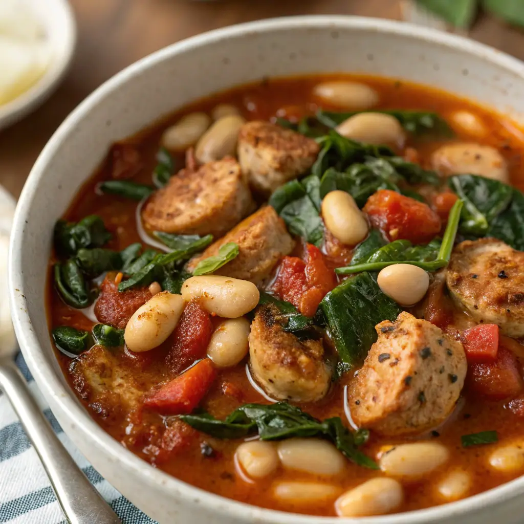 If you love a hearty bowl of chili but want something lighter and packed with nutrition, this Chicken Sausage Chili with Spinach & White Beans is the perfect balance between comfort and freshness. It combines lean chicken sausage, creamy white beans, and tender spinach in a savory tomato-based broth that’s both wholesome and deeply satisfying. The chili is layered with flavors from garlic, onion, and smoky spices, creating a cozy dish that’s nourishing yet indulgent.