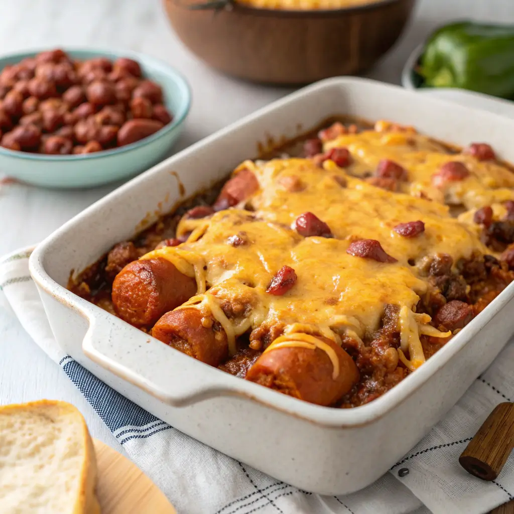 - All-in-one comfort dish: Combines chili, cheese, and hot dogs in one hearty bake.