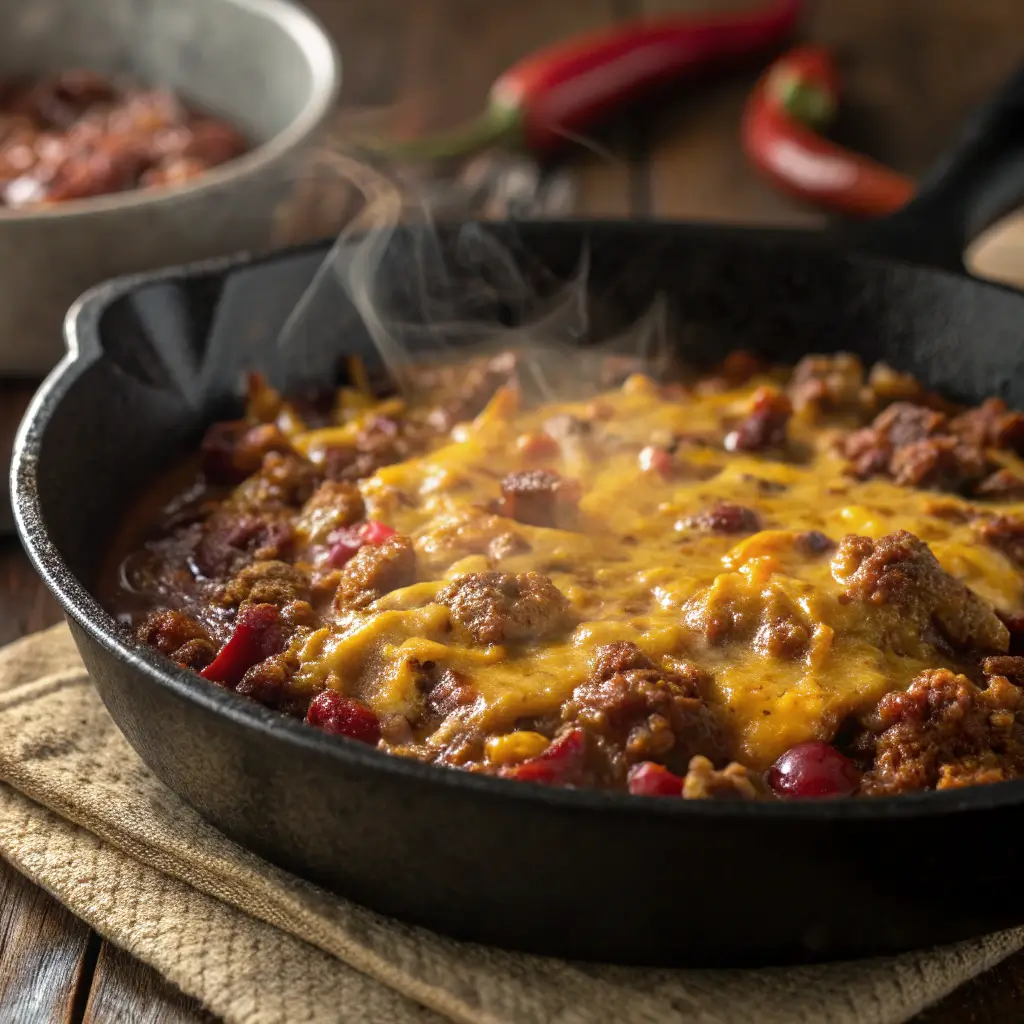 With its bold flavors, melty cheese, and satisfying texture, this skillet is guaranteed to become a family favorite. Serve it bubbling hot, customize it with your favorite toppings, and enjoy the rich, comforting taste of this ultimate fusion meal — all from one pan.