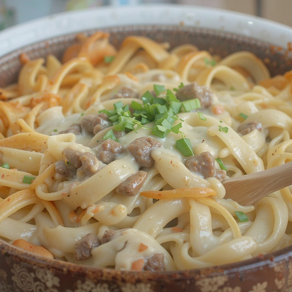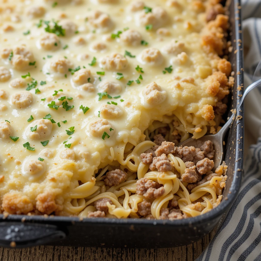 Creamy, cheesy beef noodle casserole—easy, hearty, and perfect for cozy family dinners.