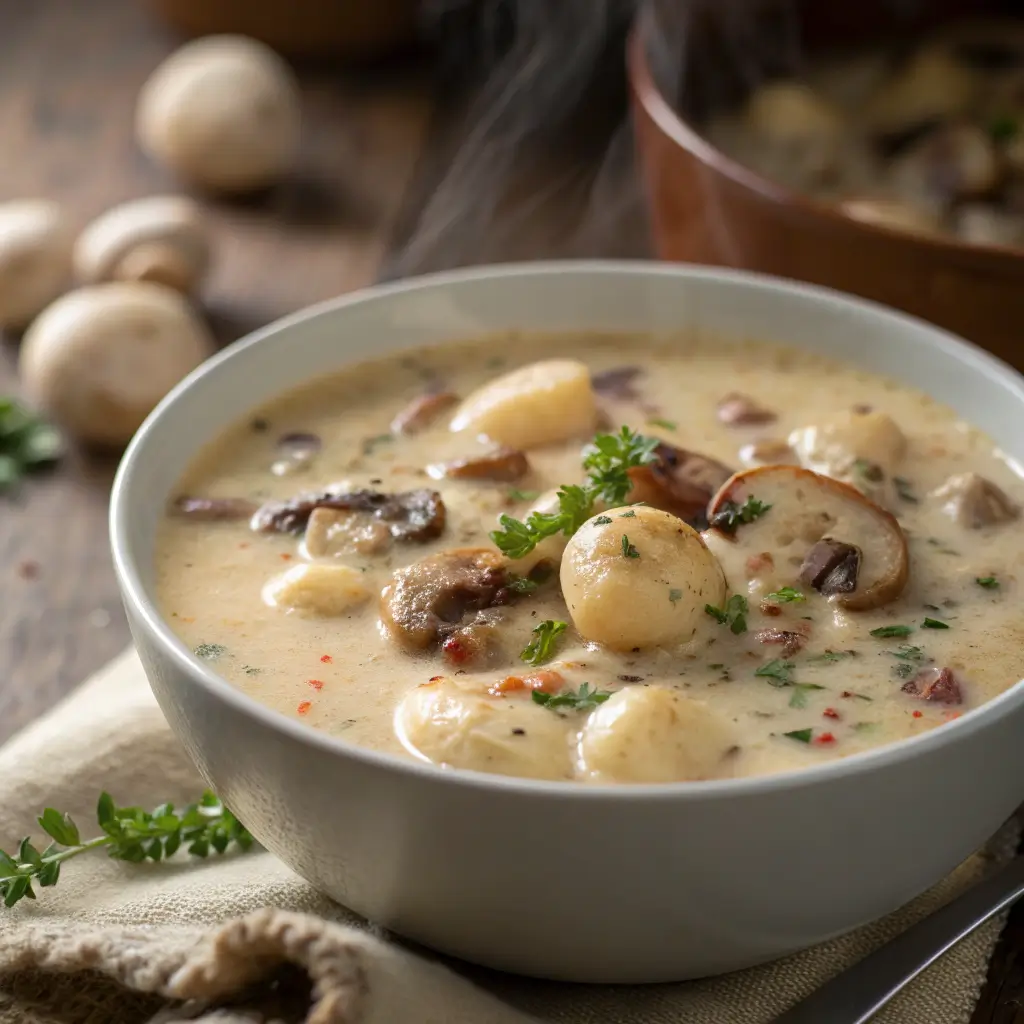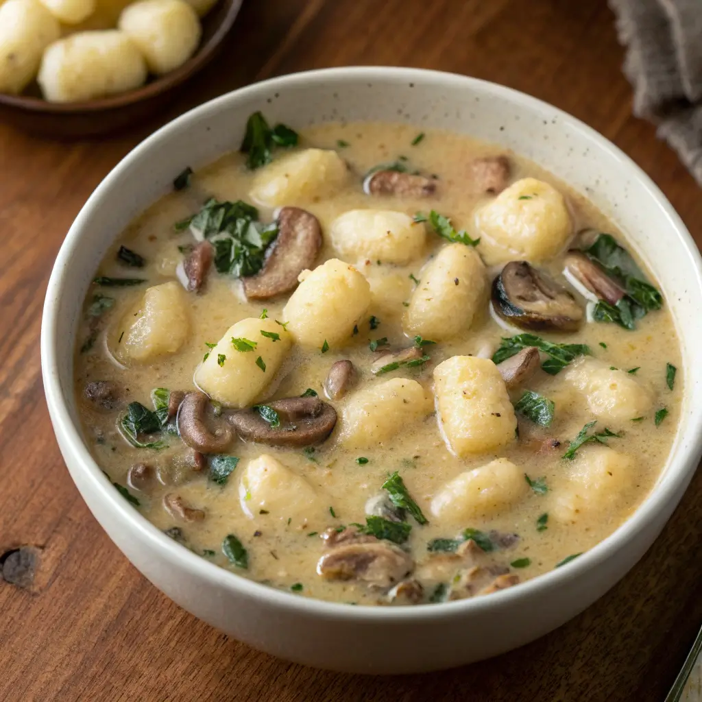 Creamy mushroom gnocchi soup takes inspiration from both Italian gnocchi dishes and European-style cream soups. By combining earthy mushrooms with a creamy broth and soft gnocchi, this dish delivers deep flavor and comforting texture in every spoonful.