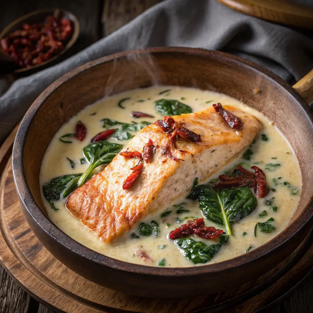 Creamy Tuscan Salmon is more than just a meal—it’s an experience. From the golden seared salmon to the rich garlic cream sauce infused with sun-dried tomatoes and spinach, every bite feels indulgent yet balanced. It’s quick enough for weeknights, impressive enough for special occasions, and versatile enough to pair with a variety of sides.