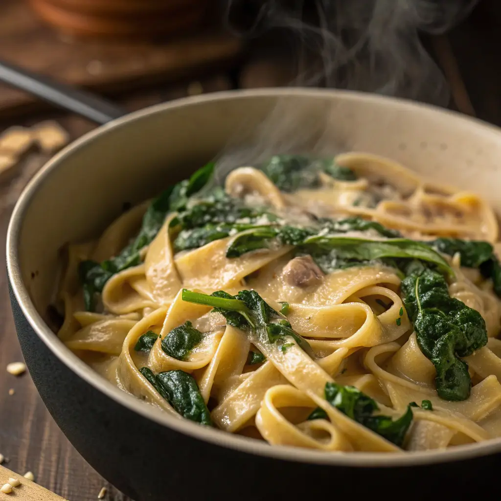 Each forkful is a celebration of fresh ingredients and bold flavors — silky sauce, tender pasta, and the vibrant green of spinach coming together in harmony. Whether you’re a long-time vegan or just exploring plant-based recipes, this dish is a delicious way to fall in love with dairy-free cooking.