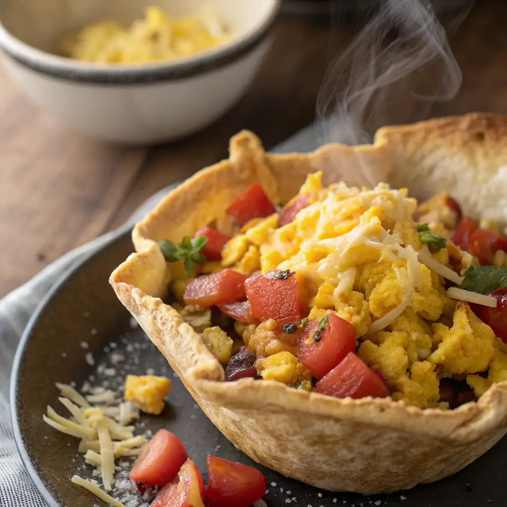 The Crispy Air Fryer Breakfast Tortilla Bowl is a simple, flavorful, and versatile way to start your day. With a crunchy tortilla shell, fluffy scrambled eggs, fresh vegetables, and melty cheese, it’s a breakfast that satisfies cravings and provides a balanced, nutritious meal.