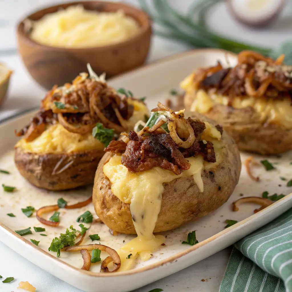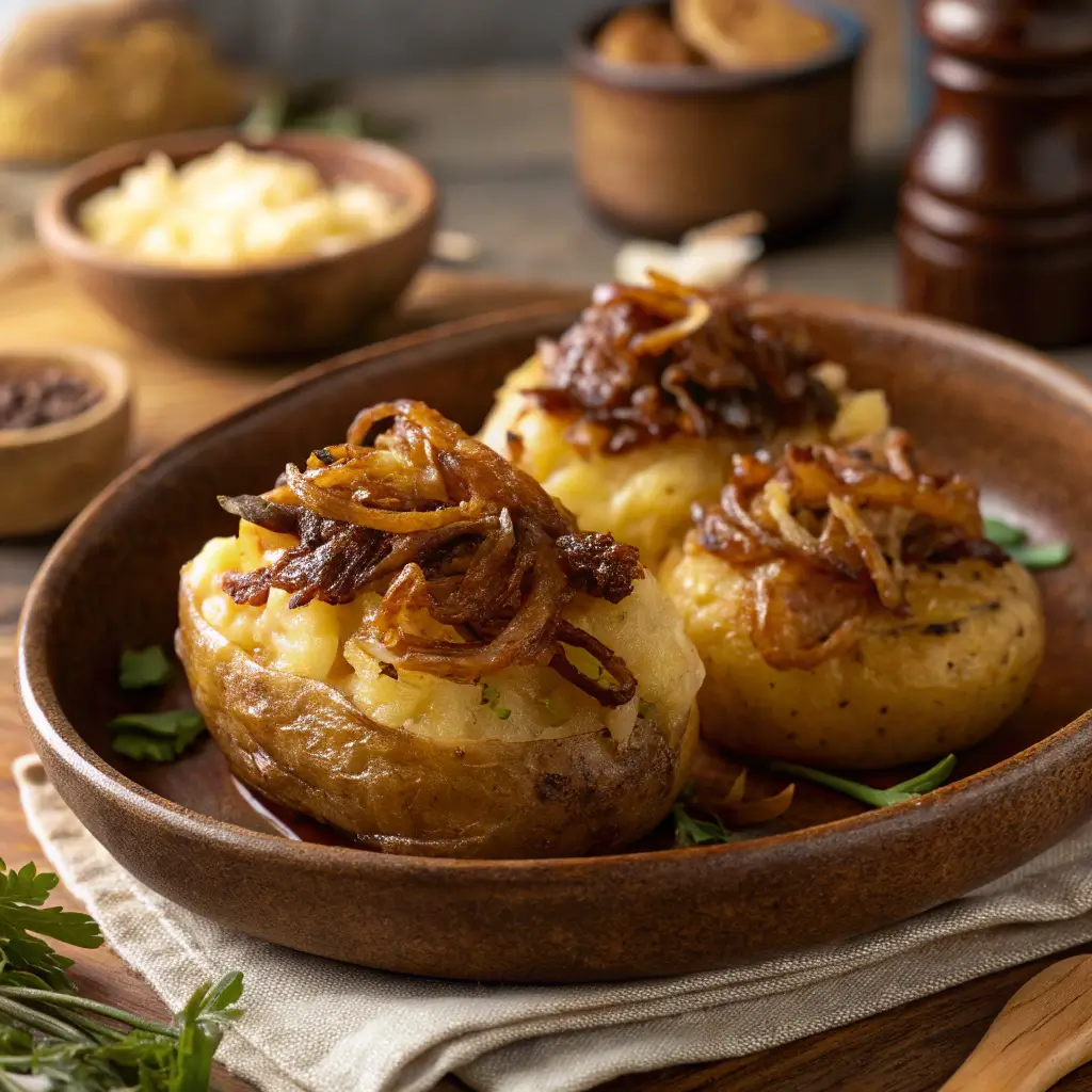 French Onion Smashed Potatoes are a savory, flavorful, and visually stunning side dish that combines crispy potatoes, caramelized onions, and melted cheese. Easy to prepare yet impressive in flavor, they are perfect for dinners, brunch, or entertaining guests.