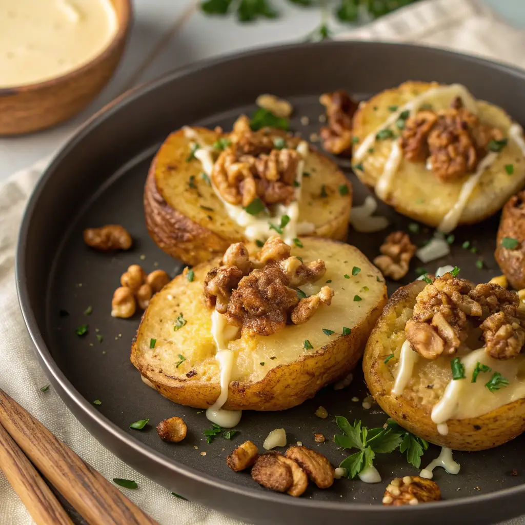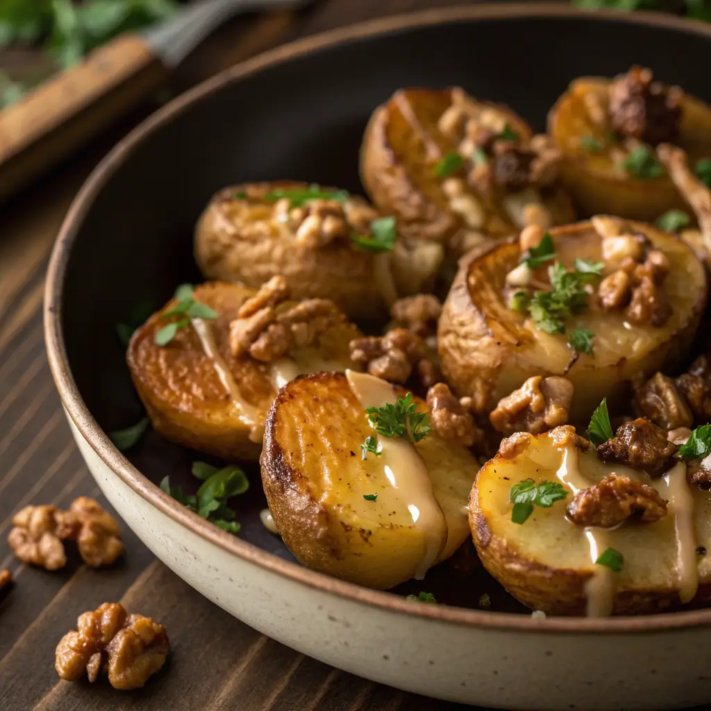 Crispy Smashed Potatoes with Walnut Dressing: Crunchy, Nutty, and Flavorful