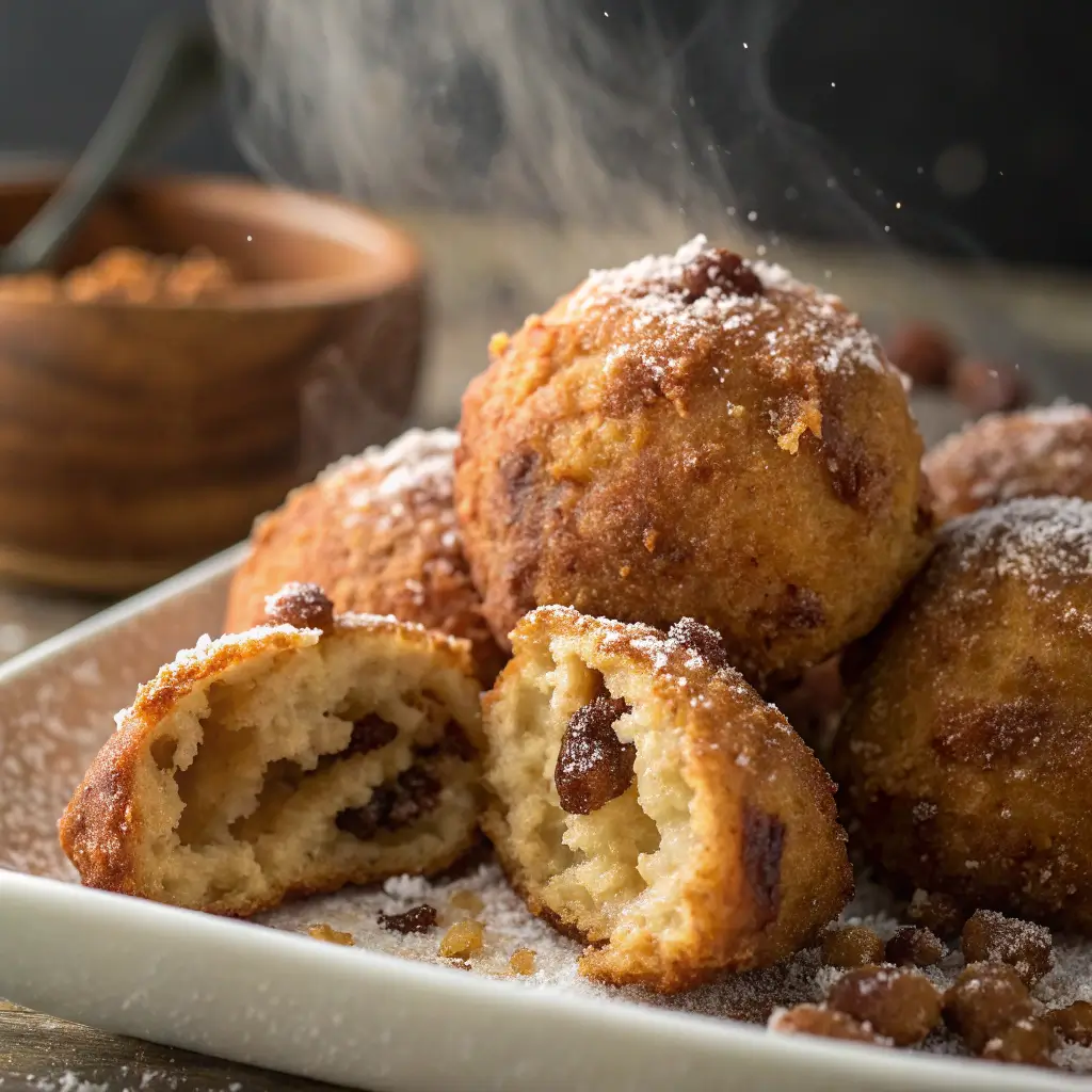 Roll the dough into bite-sized balls (about 1 inch each) and place them on a parchment-lined baking sheet. Freeze for at least 1 hour, or until firm. Freezing is essential to keep the dough intact during frying.