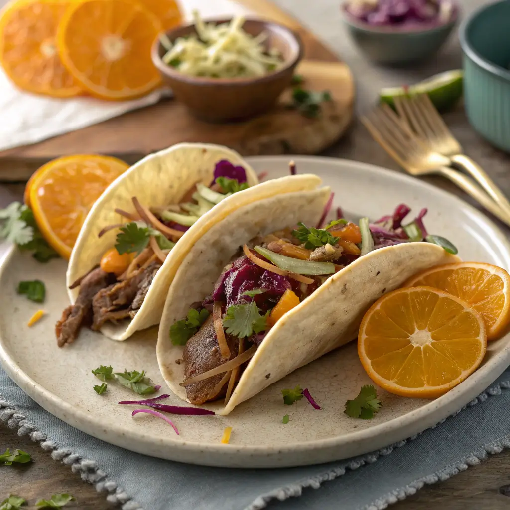 The idea of transforming this luxurious French staple into tacos adds a delightful cultural fusion: French technique meets Mexican inspiration. The addition of citrus — especially orange — brings a touch of brightness that cuts through the richness of the duck, while a crunchy winter slaw adds texture and vibrancy. This recipe celebrates seasonal ingredients, creative cross-cultural cooking, and comfort food elevated with finesse.