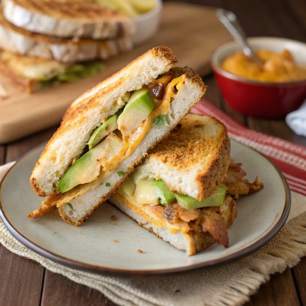 Its versatility means you can dress it up with gourmet ingredients or keep it simple with pantry staples. With the creamy richness of avocado, the protein boost of chicken, and the irresistible pull of melted cheese, this sandwich is sure to become a regular in your kitchen rotation.