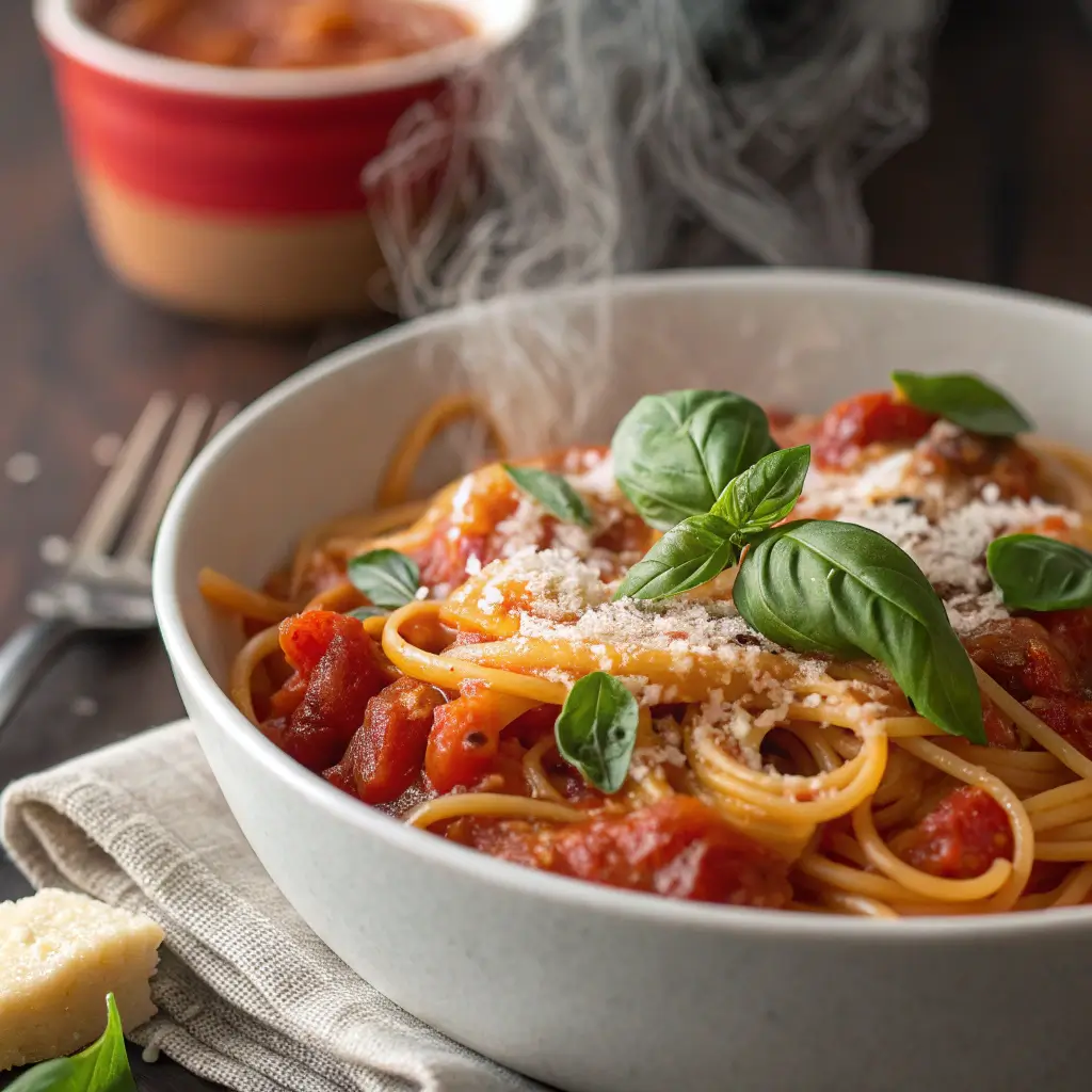 The beauty of this recipe is its simplicity and speed. With minimal ingredients, you can create a dish that tastes like it simmered all afternoon. The pasta absorbs the rich tomato flavors, while the basil adds a fresh, herbaceous note that elevates the entire dish. It’s easy to adjust for families, pairs beautifully with a crisp salad, and even works well for meal prep.