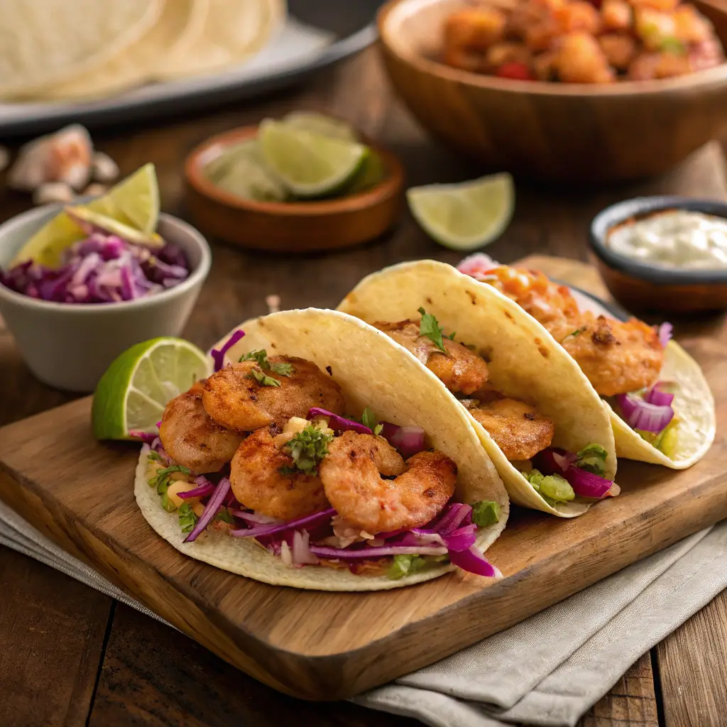 The inspiration for this recipe comes from the traditional Baja-style taco, which emphasizes fresh seafood, crisp vegetables, and simple seasonings. By incorporating a homemade slaw and lightly seasoned shrimp, this recipe captures the essence of coastal cooking in a quick and approachable version suitable for home cooks.