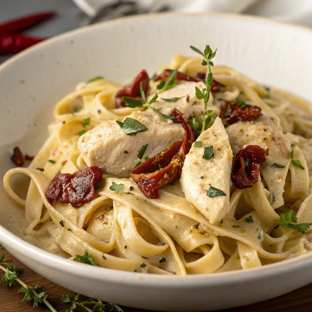 This Fettuccine Alfredo with Chicken and Sundried Tomatoes Recipe is a comforting, restaurant-quality dish you can enjoy right at home. With its creamy sauce, savory chicken, and tangy sundried tomatoes, it’s a meal that satisfies both the heart and the palate.