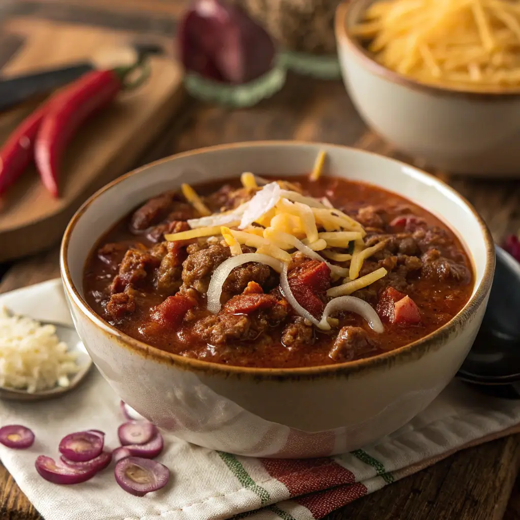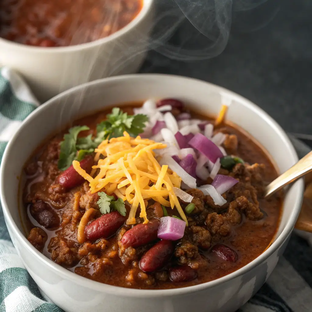 This chili isn’t shy. It’s rich, meaty, and bursting with layers of flavor from chili powder, smoked paprika, and a touch of cayenne. The slow simmering process deepens the flavors, allowing the beef and spices to meld into a hearty, thick stew that warms you from the inside out. It’s a recipe built for sharing — just like the communal meals that inspired it.