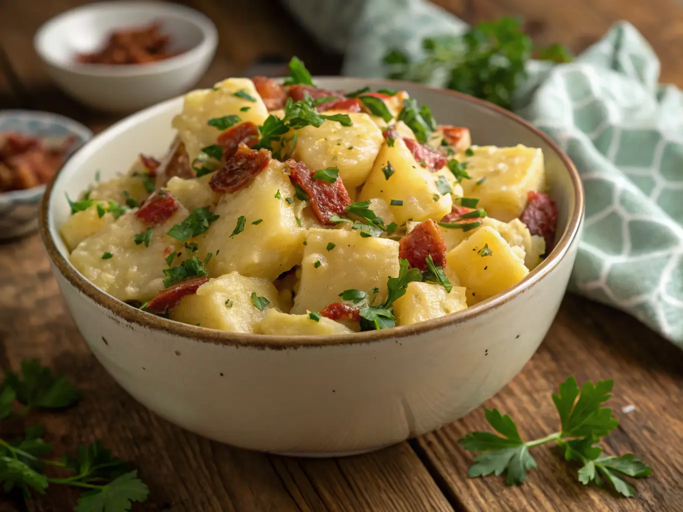 Potato salad (Kartoffelsalat) holds a special place in German culinary tradition, with roots tracing back to the 18th century when potatoes became a staple crop in Europe. The dish varies significantly by region: