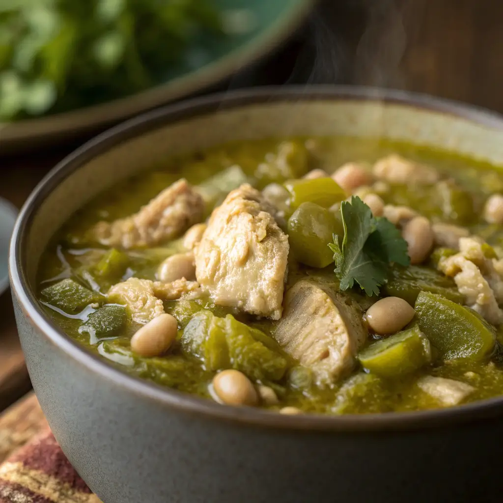 Green chili, or chile verde, traces its origins to Mexican and Southwestern cuisines. Traditionally, it’s made by slow-cooking pork or chicken in a sauce of roasted green chiles and tomatillos until tender. This version honors that tradition but keeps things lighter by using shredded chicken breast and nutrient-packed white beans.