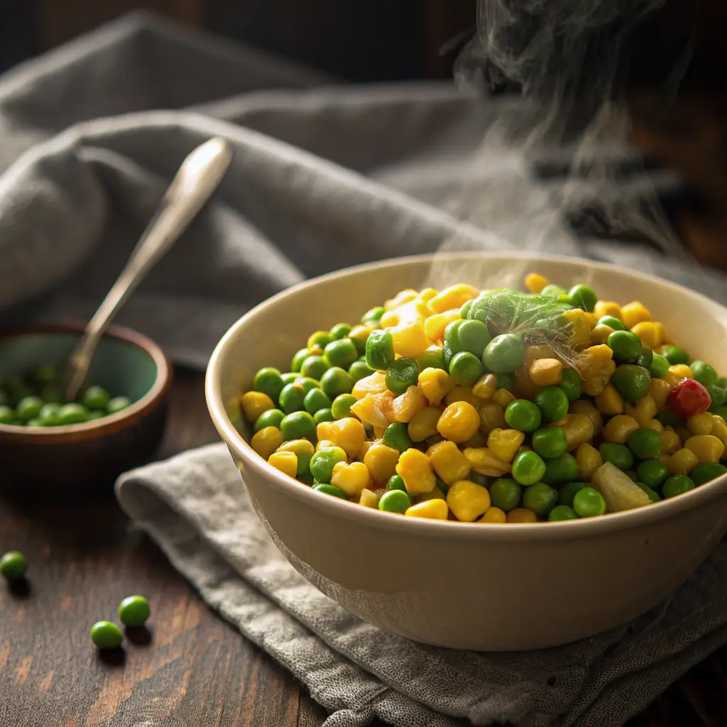 - Freezing – Not recommended, as peas and corn lose their crisp texture.
