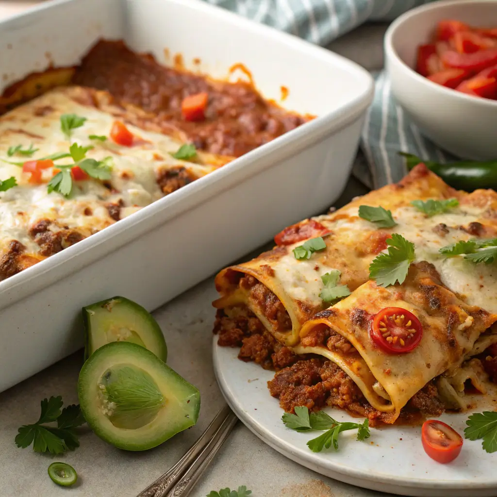 While traditional lasagna originated in Italy with layers of pasta and rich meat sauce, enchiladas have deep Mexican roots dating back to Aztec times, when tortillas were filled and dipped in chili sauces. The Lasagnchiladas concept emerged from the growing popularity of fusion cuisine—where creativity meets comfort. By swapping pasta sheets for tortillas and marinara for enchilada sauce, the dish celebrates both traditions in one delicious, cohesive bake. It’s the perfect symbol of how global flavors can harmonize beautifully in a single pan.