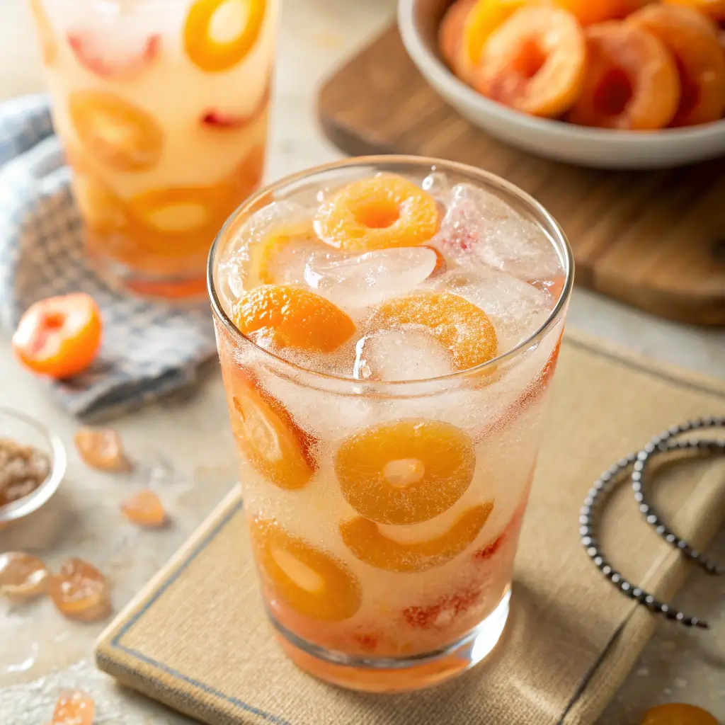 This recipe is ideal for warm days, parties, picnics, or anytime you want a non-alcoholic drink that feels exciting and different from ordinary juice or soda. As the peach ring candy slowly melts, it releases sweetness and peach flavor, transforming the drink as you sip it. Every glass becomes interactive, colorful, and full of personality.