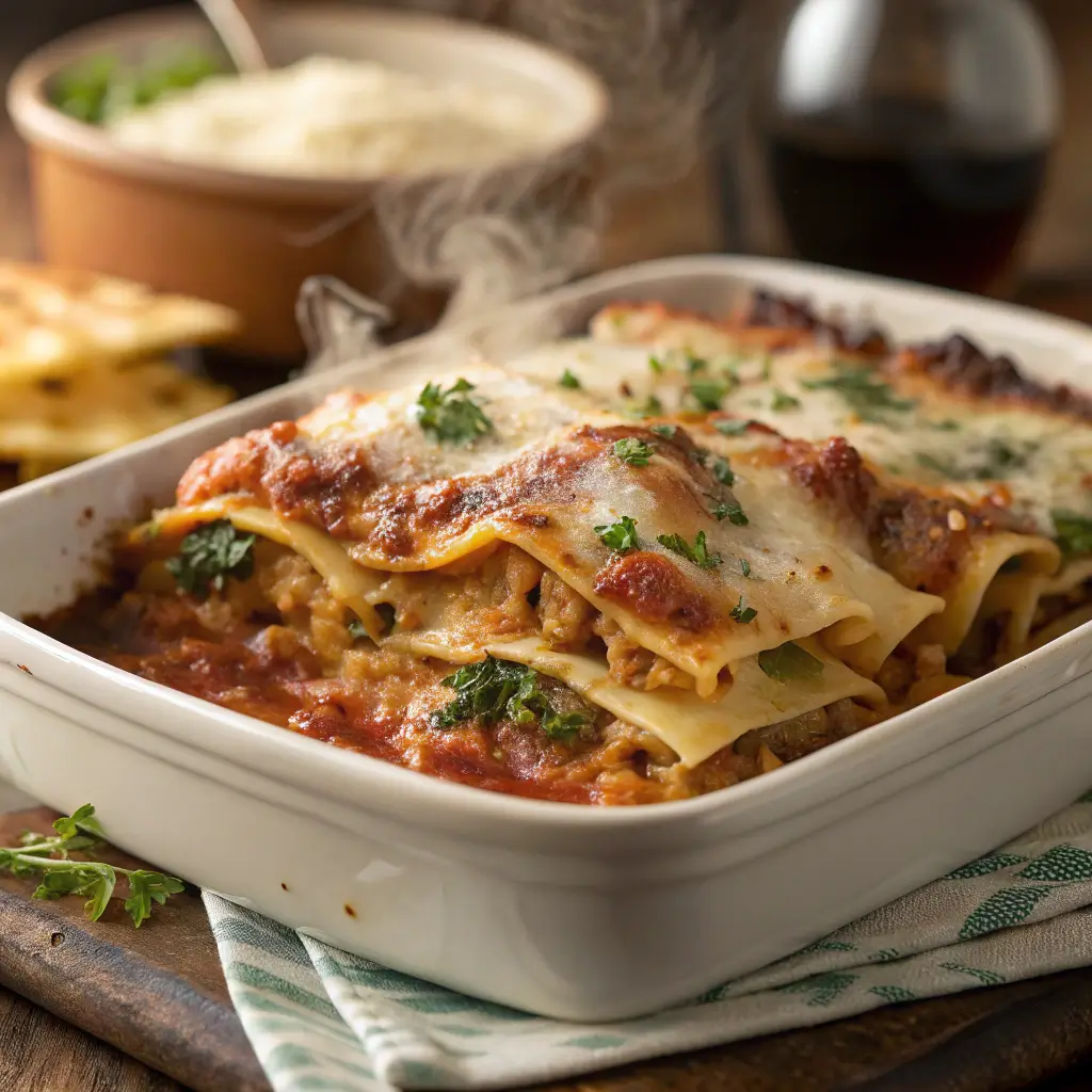 Let the lasagna rest for 10 minutes before serving. This helps the layers set and makes scooping easier.