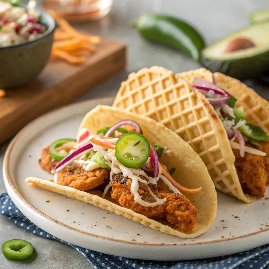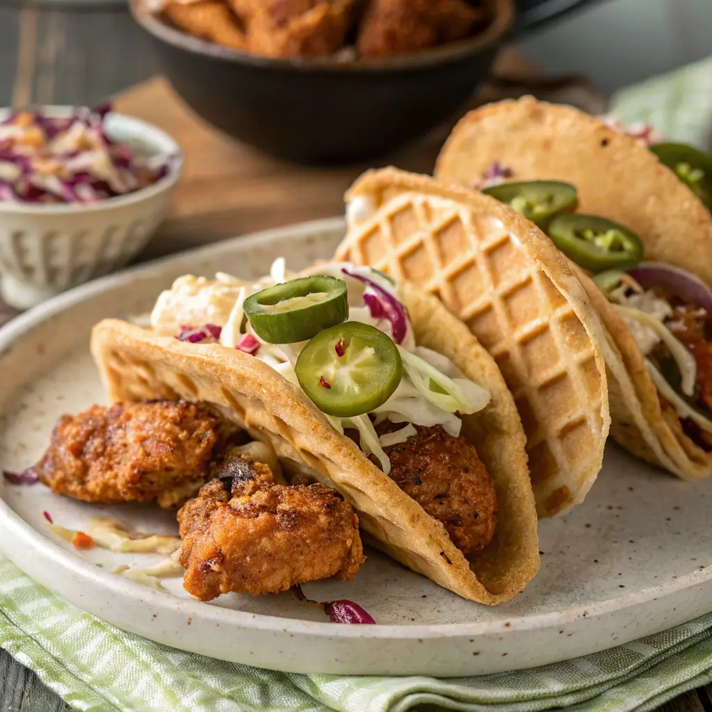 - 🧇 Creative & fun: Classic chicken and waffles turned into tacos.