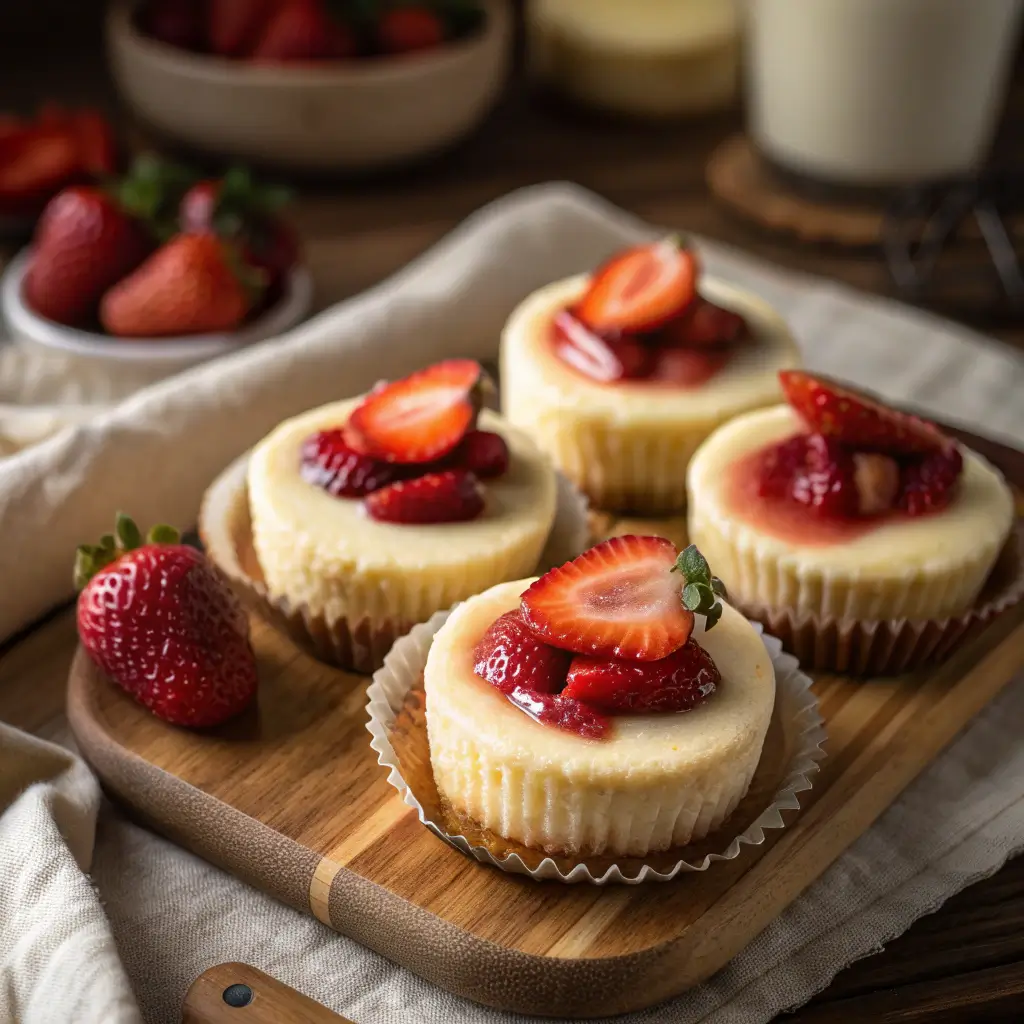 Mini Cheesecakes with Strawberry Topping – Bite-Sized Perfection