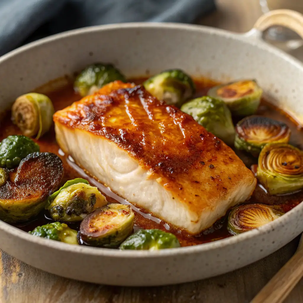 The combination of caramelized glaze and roasted greens creates a harmony of flavors — slightly sweet, deeply savory, and subtly earthy. Even picky eaters are often won over by the natural sweetness of the Brussels sprouts combined with the delicate cod.