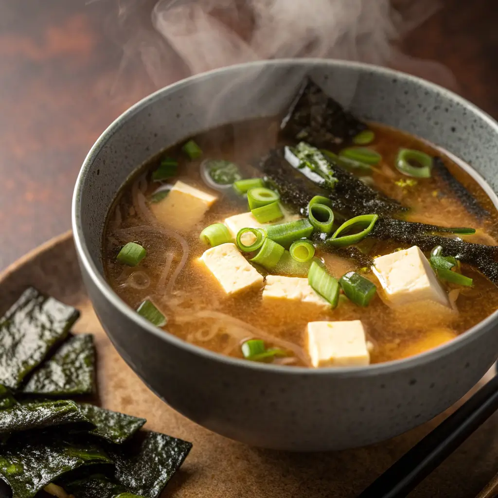 Tofu, a source of plant-based protein, and wakame seaweed, rich in iodine and minerals, make this soup both nourishing and filling. Scallions are commonly added at the end for freshness and color. The combination of these ingredients highlights the Japanese culinary philosophy of simple, seasonal, and balanced meals.