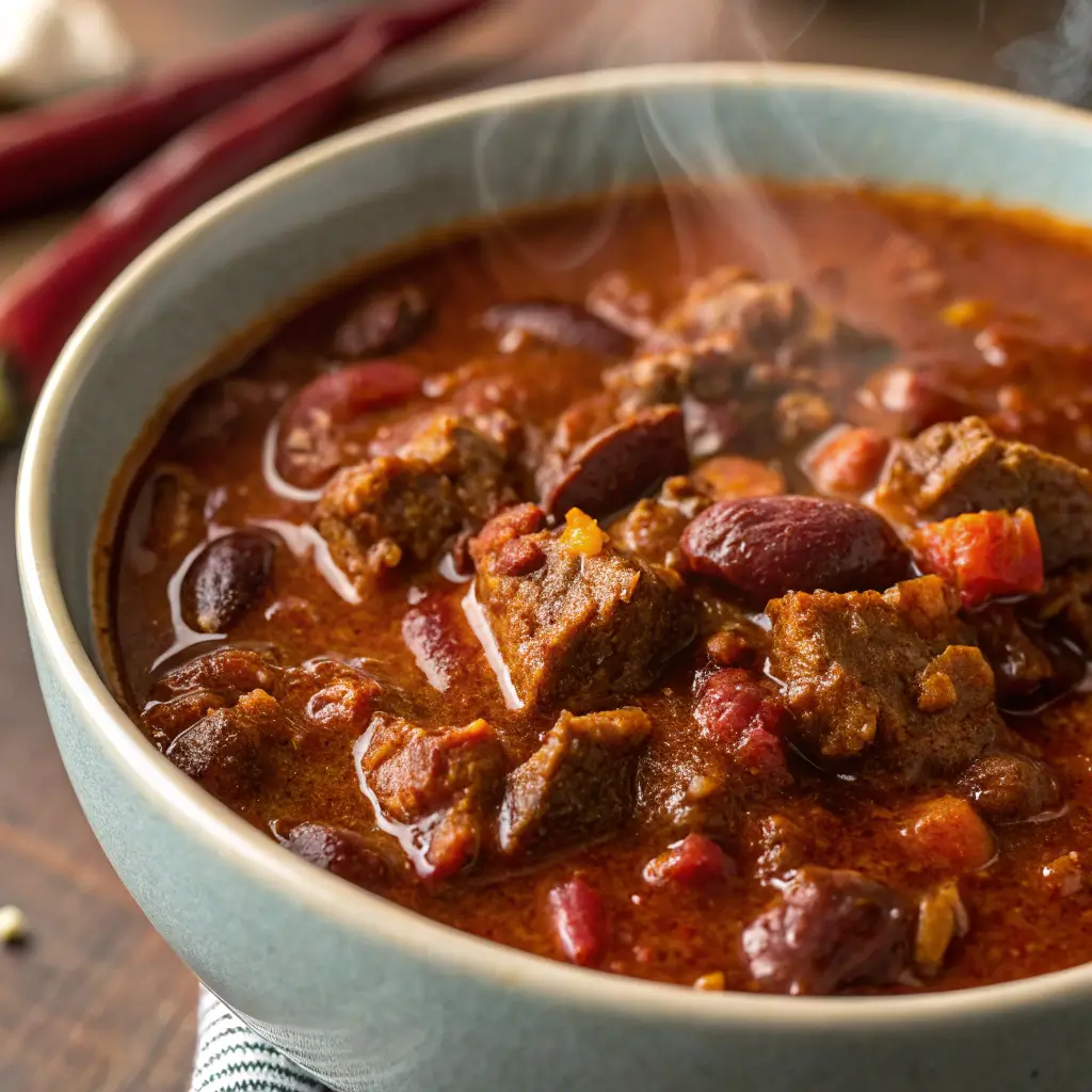 Unlike other versions of chili that rely on beans or tomatoes for body, this Texas-style chili focuses on the quality of the meat and the complexity of the spice blend. The sauce is thick and velvety, clinging to every piece of beef, creating an unforgettable meal perfect for cold evenings, tailgates, or Sunday dinners.