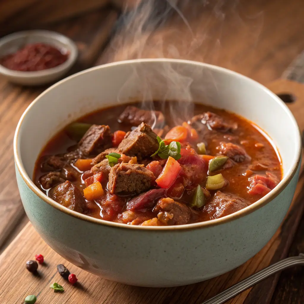 If you’re a purist when it comes to chili, this ‘No Beans’ Beef Chili for Traditional Fans is the perfect bowl of bold, meaty comfort. This old-school classic celebrates the essence of authentic chili — tender chunks of beef simmered slowly in a rich, spiced tomato sauce, bursting with smoky depth and a touch of heat. No beans, no filler — just pure, hearty chili flavor that’s been a staple of Texan-style cooking for generations.