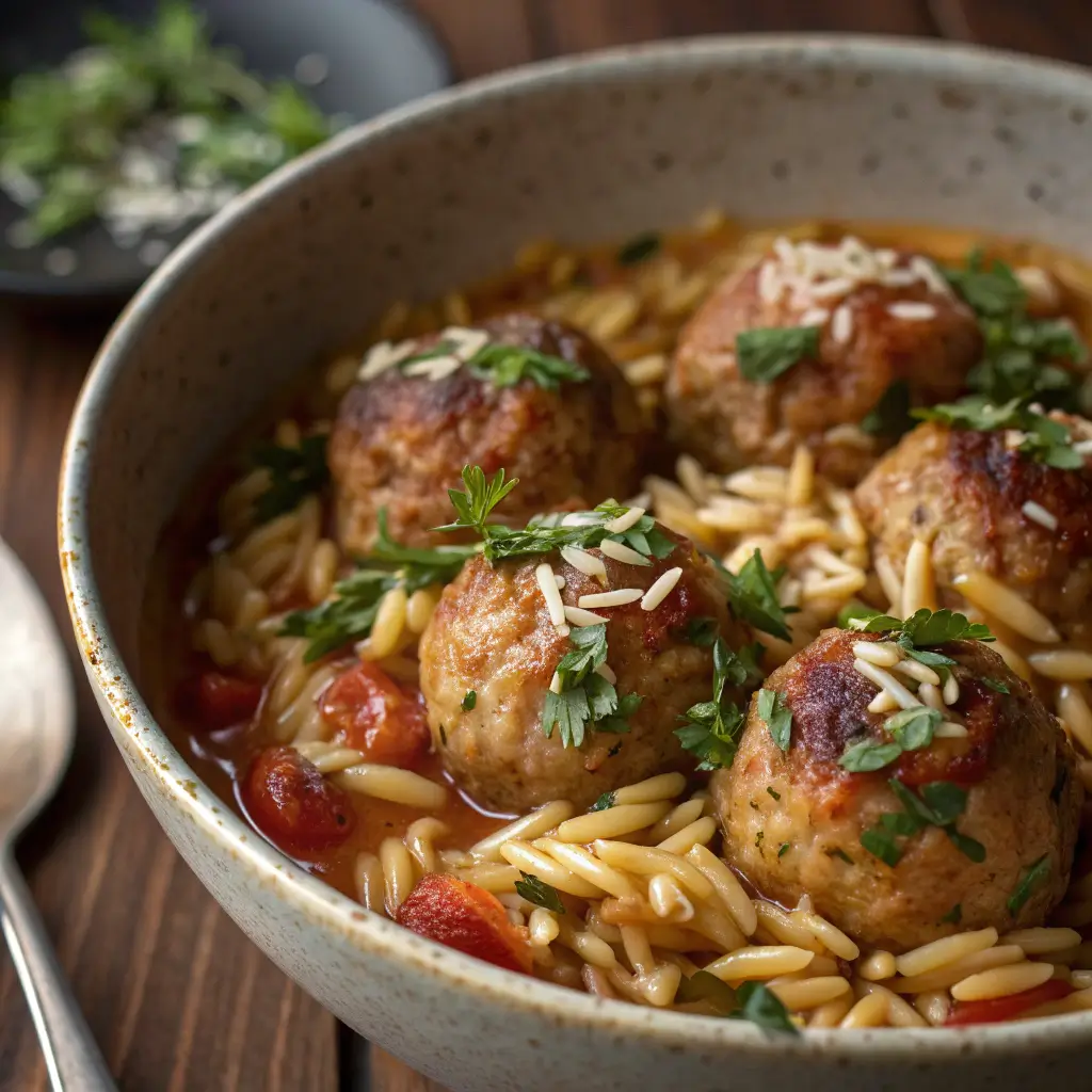 One Pan Chicken Meatballs with Orzo is the kind of meal that brings people together. It’s cozy, satisfying, and full of flavor — with the added bonus of being cooked in a single skillet. From the tender, juicy chicken meatballs to the creamy, lemony orzo, every bite is comforting and delicious.