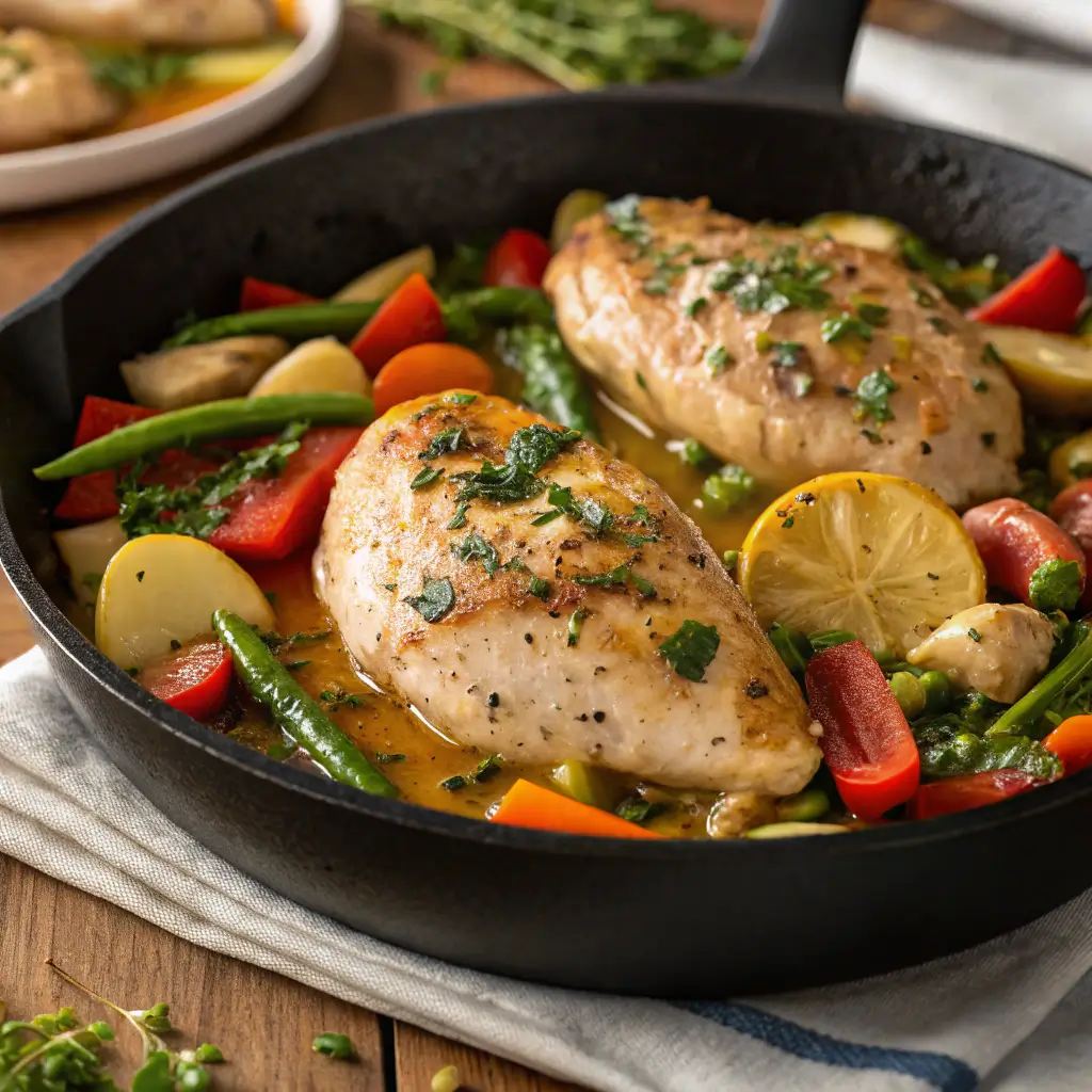 This dish is inspired by classic French and American home cooking techniques, where roasting or sautéing ingredients together creates maximum flavor with minimal effort. By finishing everything in one pan, the natural sweetness of vegetables and the savory richness of chicken come together perfectly, offering a healthy and indulgent experience at the same time.