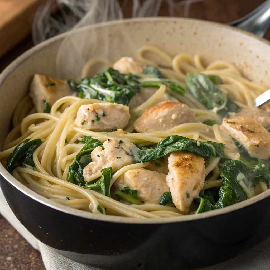 What makes this recipe special is its simplicity and depth of flavor. Chicken is cooked to perfection, while spinach adds a fresh, vibrant touch. The pasta absorbs a creamy, cheesy sauce, resulting in a hearty, indulgent, yet balanced meal. With minimal cleanup, this dish is both convenient and satisfying.
