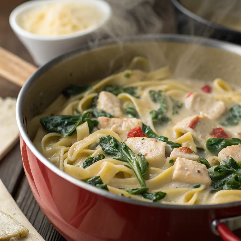 Fun fact: One-pot pasta recipes have surged in popularity due to their efficiency and flavor concentration. Cooking everything together ensures that pasta absorbs the creamy sauce, and the chicken and spinach release juices that enhance the overall taste. This dish is a modern solution for busy cooks who want homemade comfort without the fuss.