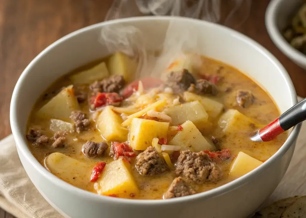 Cheeseburger Soup with Ground Beef & Potatoes Introduction If you’ve ever wished you could enjoy all the comforting flavors of a cheeseburger in a cozy, spoonable form, Cheeseburger Soup with …