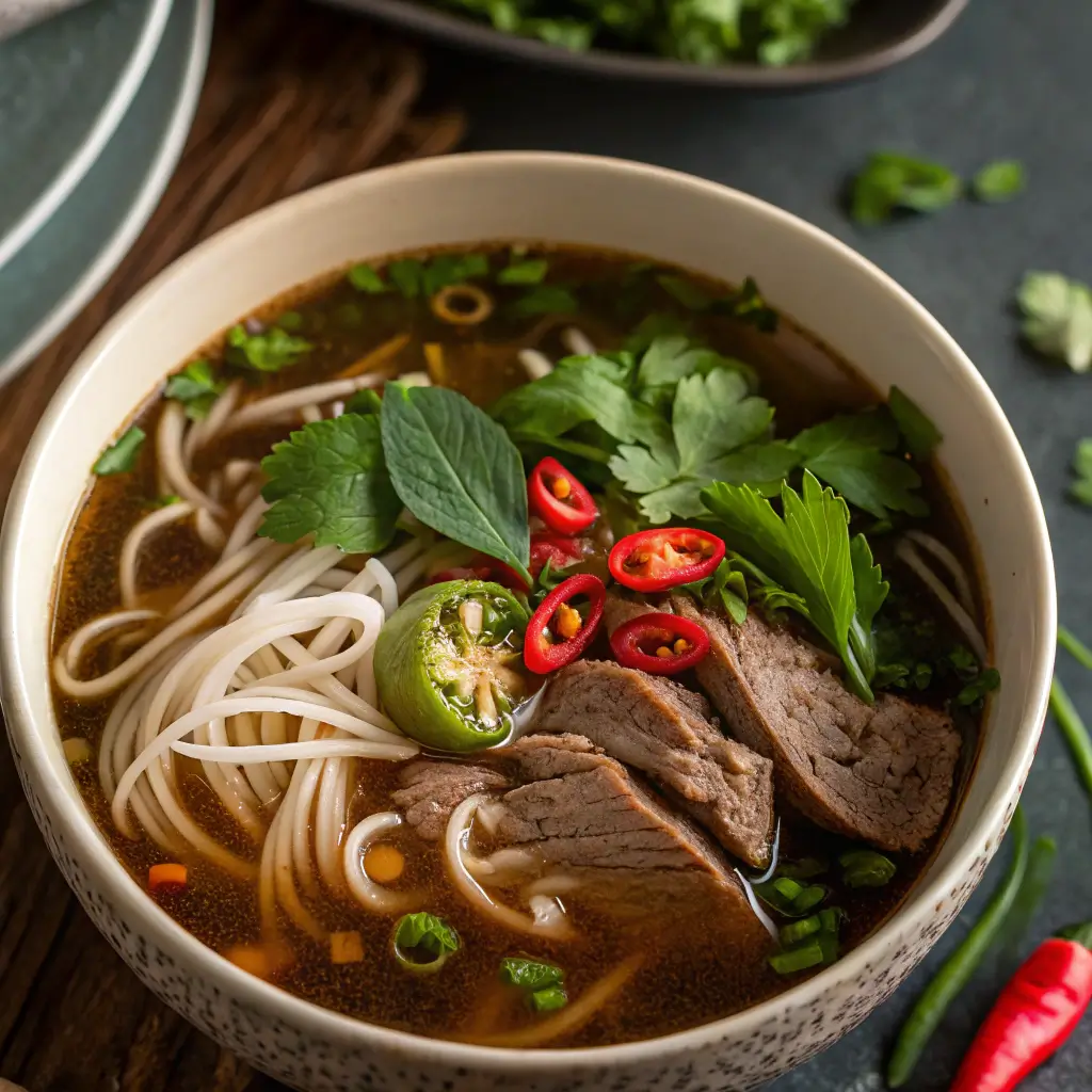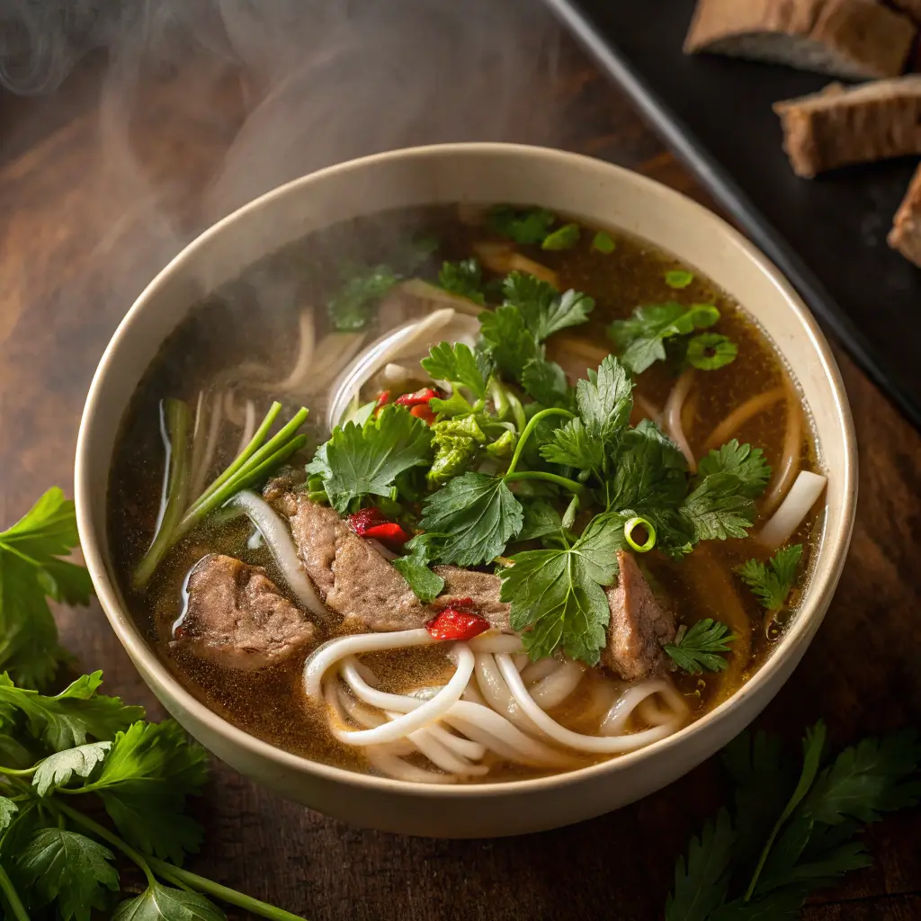 Pho-Style Beef Noodle Soup with Fresh Herbs: A Bowl of Vietnamese Comfort