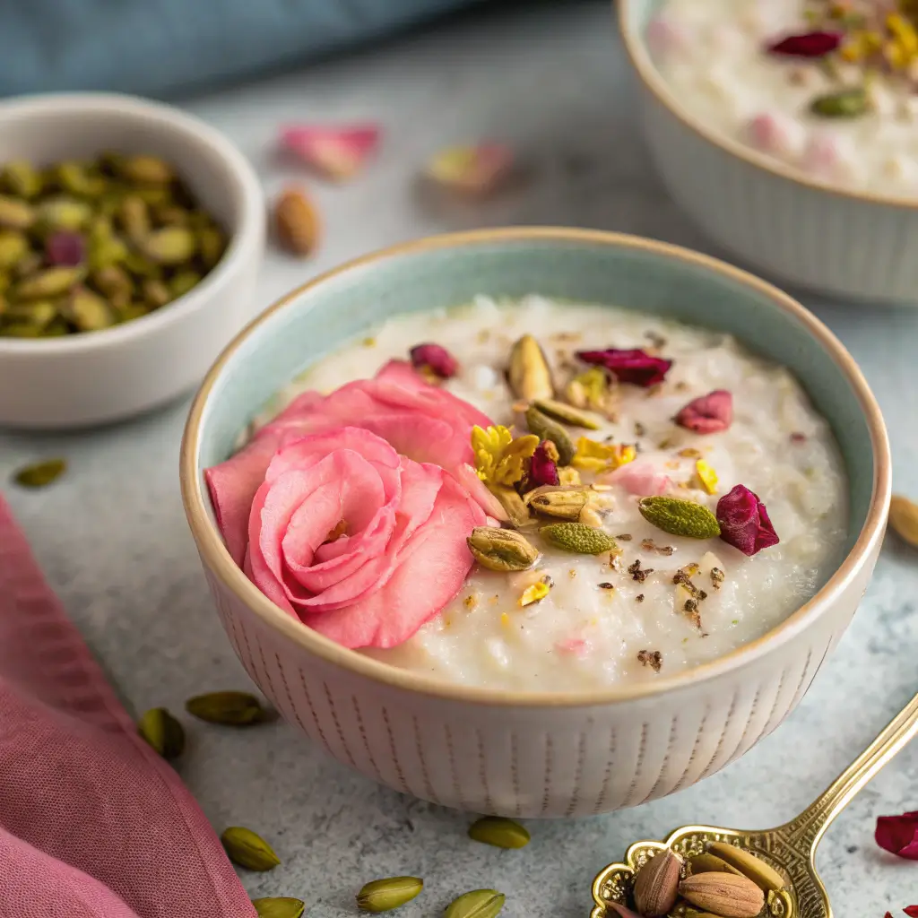 With its rich creaminess, aromatic rose flavor, and crunchy pistachios, this rice pudding is both sophisticated and comforting. Serve it warm for a cozy experience or chilled for a refreshing, indulgent dessert that will impress family and guests alike.