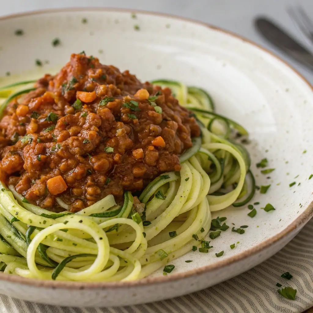 Plant-Based Lentil Bolognese Over Zucchini Noodles