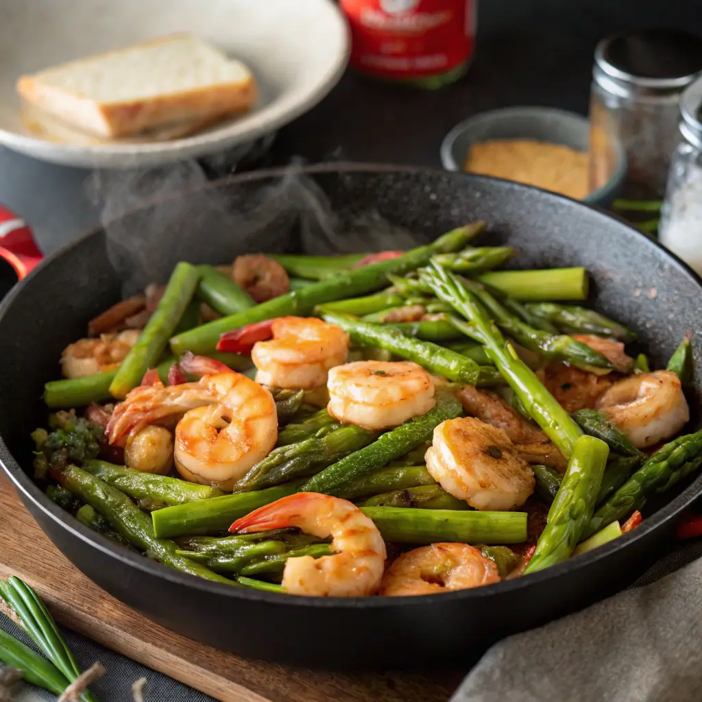 Shrimp & Asparagus Stir-Fry is all about balance. The shrimp provide protein, the asparagus brings crisp freshness, and the sauce ties everything together with savory-sweet depth. It’s quick, colorful, and customizable—a recipe that works just as well for a weeknight dinner as it does for impressing guests.